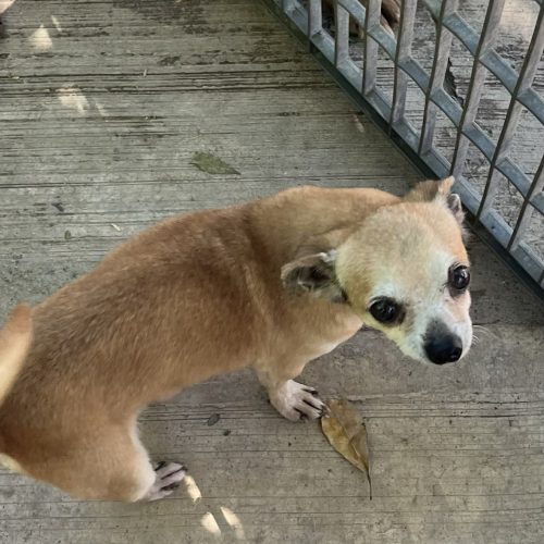 Tater was rescued in an area where people let their dogs roam. Nobody came forward and he had to be surrendered. He had a home. He has very nice manners and is a cuddle bug.